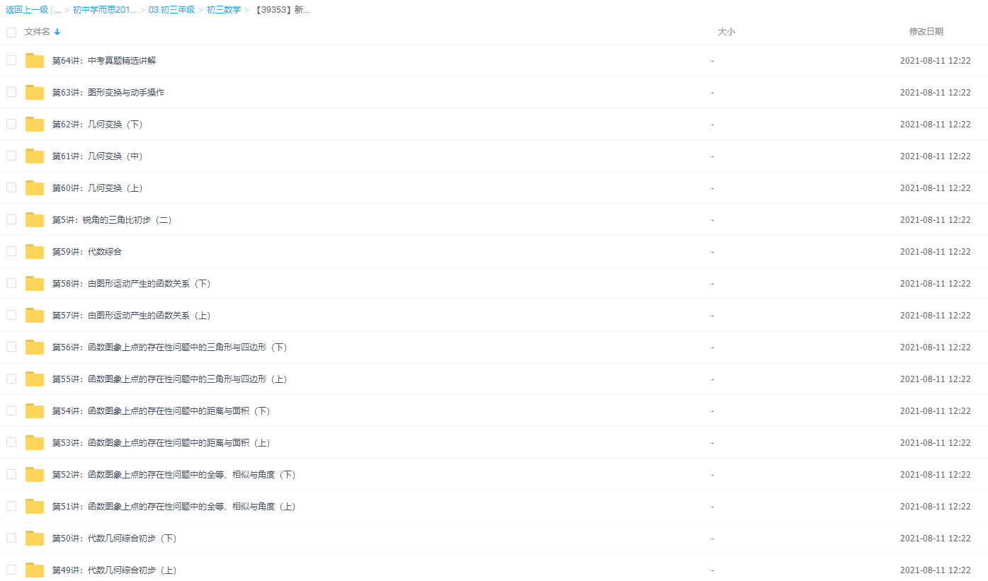 希沃易 2023年陈祖维初中联赛暑假班秋季班 目录: ├─2023年陈祖维初中联...