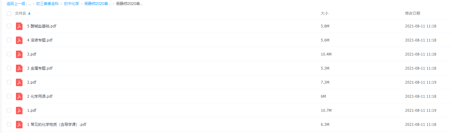 作业帮 2020寒 杨静然 中考化学冲顶班(带讲义)