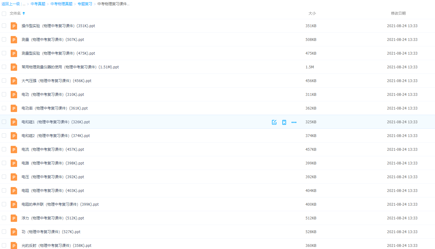想要物理学的好,那么学习复习少不了!中考物理复习课件共33个专题操作型实验测量等专题,一板块一板块来攻破!