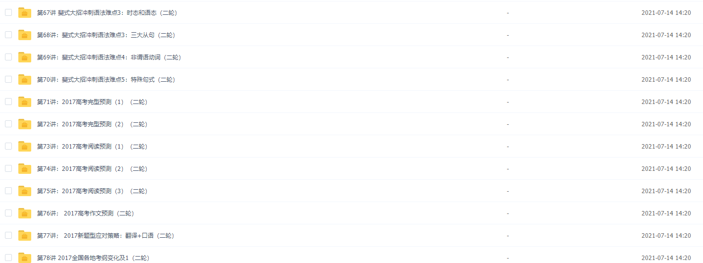 此课件来自学而思网校,2018高考顾斐牛津版英语总复习年卡一轮二轮78集全套。主讲顾斐老师喜欢用清晰的逻辑思维帮学生梳理知识点,用最简练的语言帮孩子掌握最高效的技巧和方法。此课件主要知识点包括:高考一轮复习备考指南、语法满分冲刺、阅读高分突破、完型高分突破、完型技巧综合运用、超常记忆法突破词汇硬伤、高考真题词汇串讲、高考作文写作技巧、斐式大招冲刺语法难点等视频。