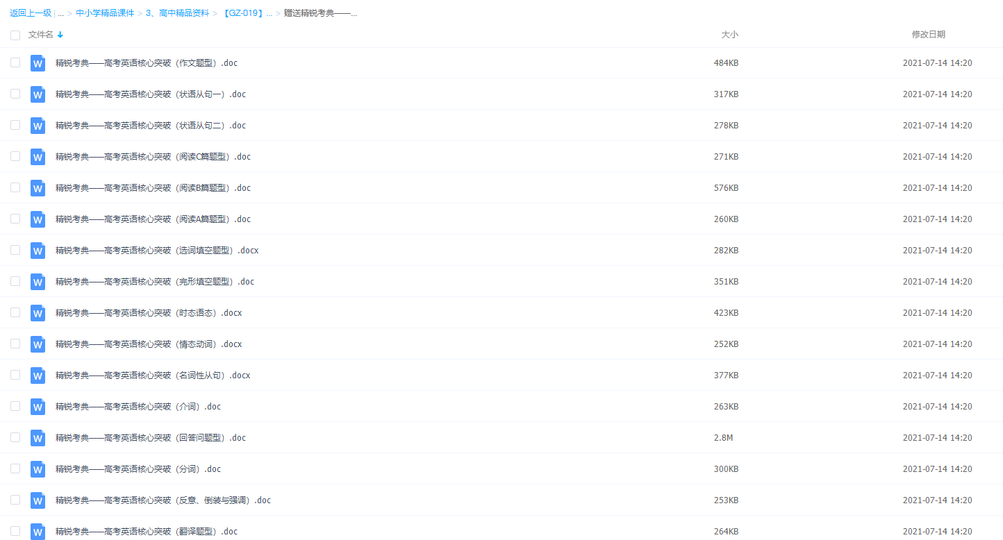 英语是所有科目中最不依赖于思维逻辑及平时积累得科目,突破英语的核心需要掌握这三个正确方法,1.扎扎实实搞定3500个单词得发音/拼写和词义,2.语法搞得扎扎实实3.搞定英语题型固定得解题模式和技巧。此课件来自精锐教育高考英语核心突破(适用于一二轮复习)Word版,以上内容希望对大家有所帮助。