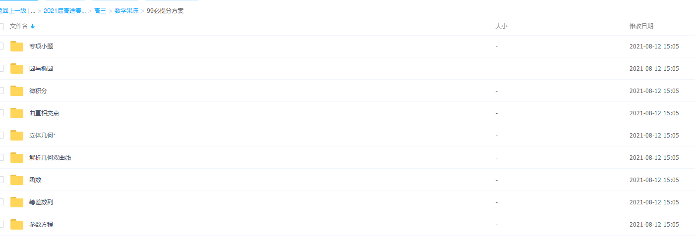 此课件来此高途课堂,2021届高途春季班(HL绝密)-高三陈国栋果冻99必提分方案。课程知识点主要包括专项小题、圆与椭圆、微积分、曲直相交点、立体几何、解析几何双曲线、函数、等差数列和参数方程等课程。果冻思路清晰,99必提分方案涵盖高中很多知识点,非常详细,希望对大家有所帮助!