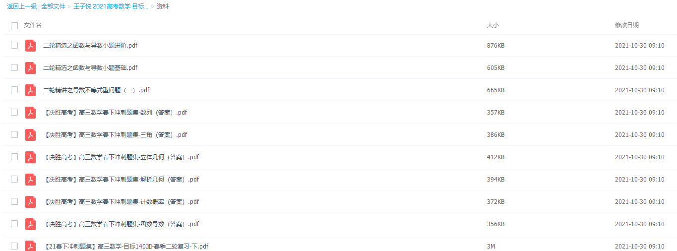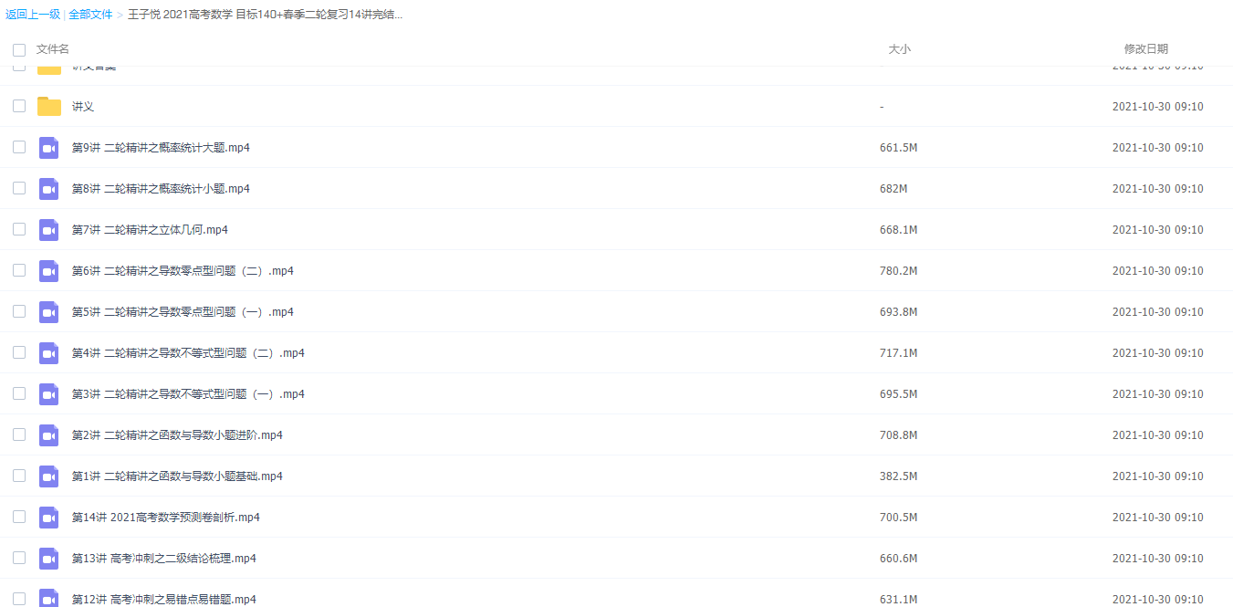 2021学而思王子悦数学二轮复习目标140+课程视频