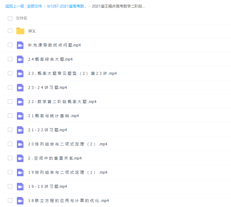 此课件来自王嘉庆2021届高考数学一轮复习网课视频(一、二阶段 含讲义),高考数学一轮包含:第一阶段、第二阶段 高考复习课,第1阶段:常见题打底,夯实基础,厚积薄发,第二阶段:知识点梳理,排查盲点,重建信心。王嘉庆老师擅长函数、导数、解析几何知识板块!
