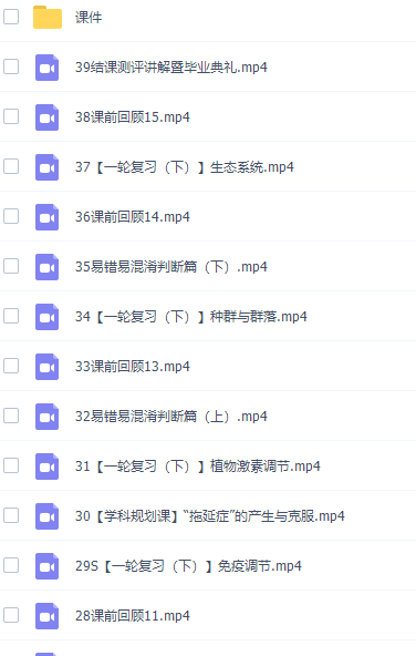 此课件来自猿辅导网校,张鹏高三生物课2021年秋季S班课程完结。此课件主要知识点包括:开学典礼暨课程导学、基因定律、自由组合定律、伴性遗传、遗传系谱图与人类遗传病、基因的本质、DNA的复制与基因的表达、生物变异、生物育种与生物进化、内环境与稳态、神经调节、体液调节、免疫调节、植物激素调节等视频。