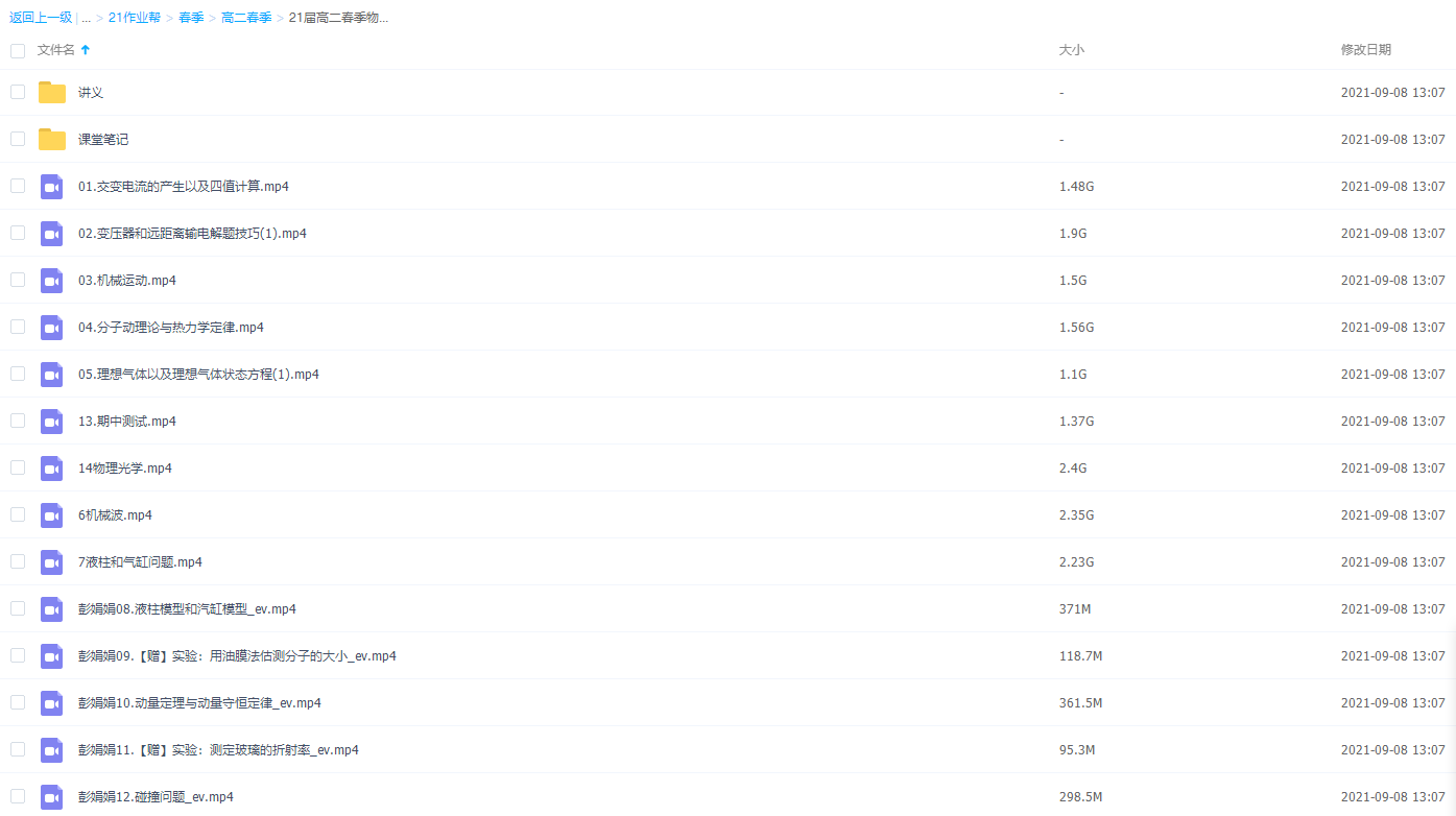 此课件来自作业帮网校,2021作业帮高二春季物理彭娟娟尖端直播课,包括课程视频回放以及资料讲义。主讲彭娟娟老师帮学生激情满满信息十足学物理,喜欢用数据统计的角度定位,讲课逻辑清晰,思路干脆利落,语言简练幽默,习惯讲段子,擅长灌鸡汤。用最简单粗暴地套路传授技巧,让学生迅速领悟学好物理的战略思想,高效定位适合自己的方法论。此课件知识点主要包括有:实验-测定玻璃的折射率、实验-用油膜法估测分子的大小、液柱模型和汽缸模型、交变电流的产生以及四值计算、变压器和远距离输电解题技巧和分子动理论与热力学定律等视频