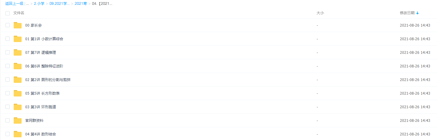 此课件来自学而思网校,2021学而思王睿四年级数学寒假培训班,包含视频课程和讲义资料 。此课件的主要知识点是小数计算综合,图形的分割与剪拼,环形跑道,长方形数表,整除特征进阶,逻辑推理等。