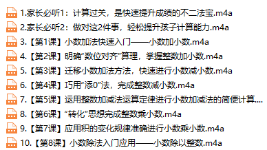 小学计算全攻略·小数与分数篇音频学习资料 声明:本站资源来自会员发布以及互联网公开收集,不代表本站立场,仅限学习交流使用,请遵循相关法律法规,请在下载后24小时内删除。 如有侵权争议、不妥之处请联系本站删除处理! 请用户仔细辨认内容的真实性,避免上当受骗!