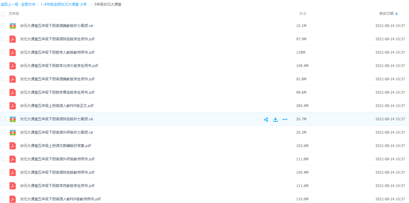 5年级状元大课堂全科电子课本辅导资料外研版听力各地区版本,想要苏教版、人教版、青岛版等各个地区的这里面都有!