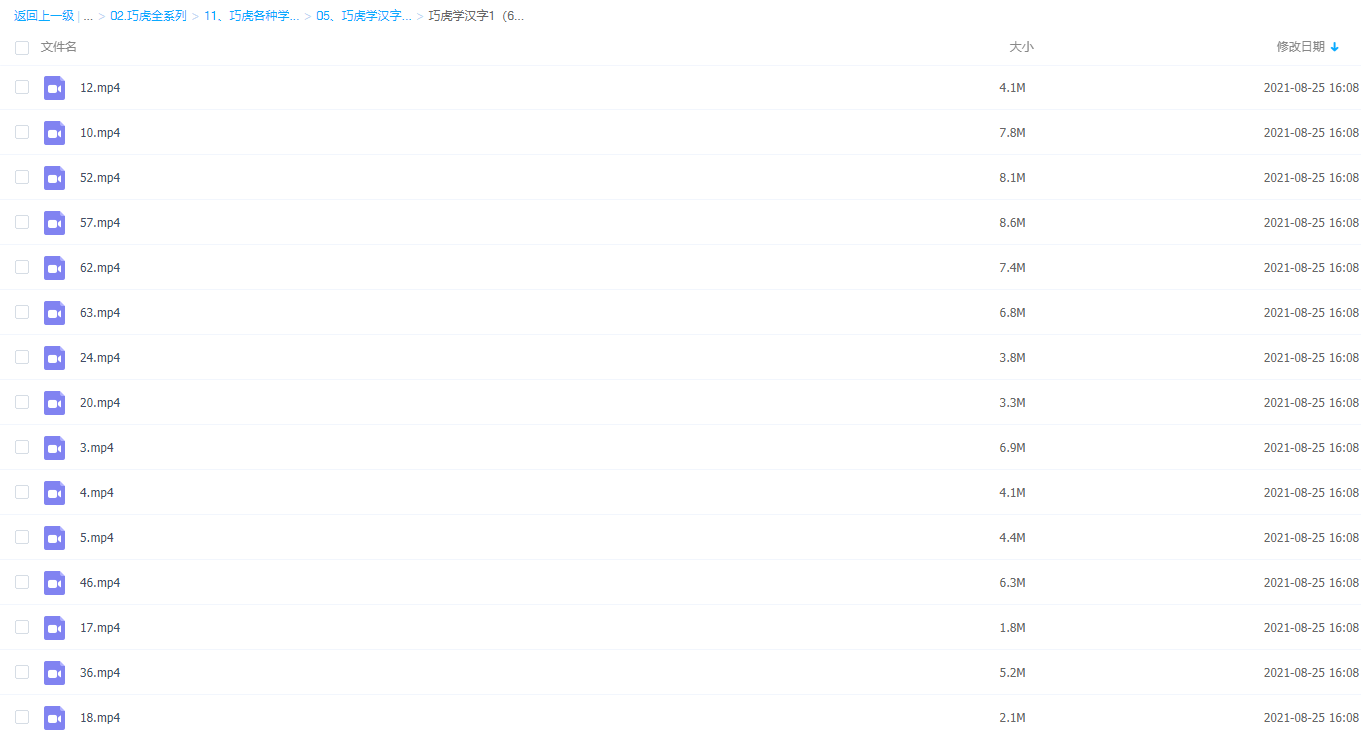 《巧虎学汉字》里包含巧虎学拼音的教程,共63集。视频中通过趣味动画教小朋友们轻松系统的学习认识常见的汉字,与巧虎学汉字一起,构成了孩子们语文启蒙的双轨教程。
